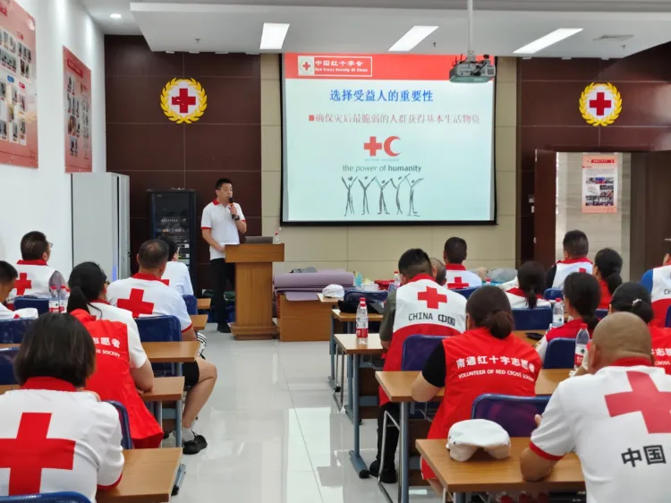 7月28日,骄阳似火、酷暑难耐,南通市红十字赈济救援队、心理救援队、崇川区和通州区红十字赈济救援队,共40多名队员在市应急救灾中心开展集训。