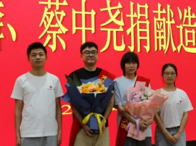 聆听了两位捐献者的感人事迹,志愿者代表向龚钰麟、蔡中尧献上了鲜花和浓厚的敬意。