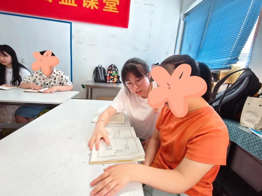 志愿者耐心细致地辅导小伙伴们完成暑假作业。